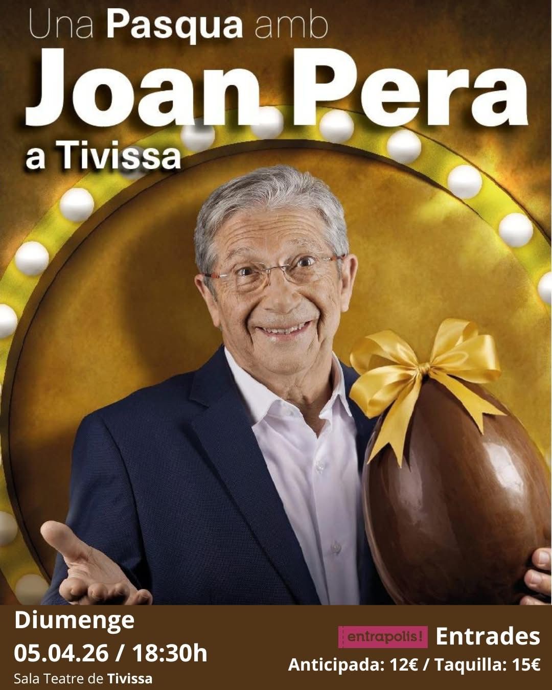 Avui tenim el plaer de rebre a la nostra ràdio un autèntic mite del teatre i la comèdia catalana: Joan Pera. Actor, doblador, director i, sobretot, una de les veus més reconeixibles de Catalunya, des de Woody Allen fins a Mr. Bean. I ens acompanya per parlar del seu pròxim expectacle a Tivissa “Una Pasqua amb Joan Pera”, un monòleg divertit que es farà el 5 d’abril a la nova Sala Teatre de Tivissa.